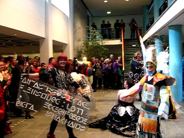 März 2011 Performance, zusammen mit 11 anderen Künstlerinnen im Rathaus Flensburg anlässlich des Weltfrauentages
